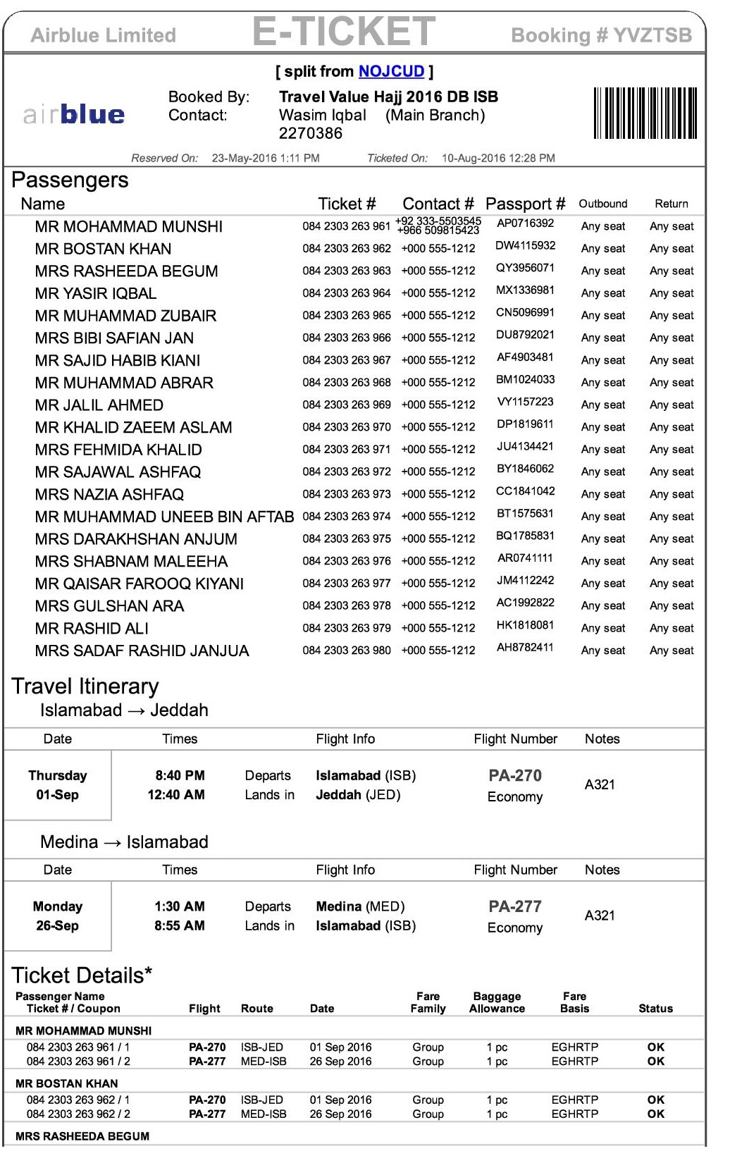 SHORT DURATION 25DAYS HUJJAJ TICKETS